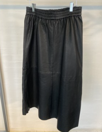 Lang skinnskjørt med strikk i livet. A-fasong. Foret.