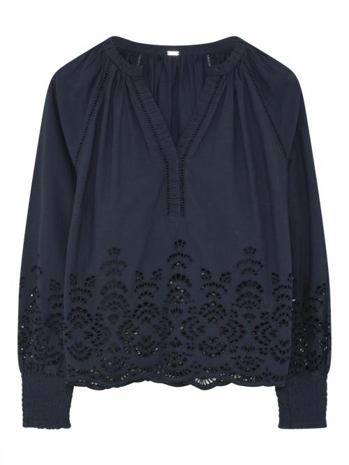Vakker bomulls bluse med broderier. Strikk i ermene.