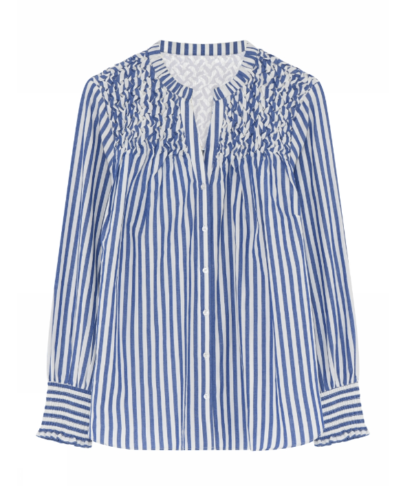 Så kul stripe skjorte med pent sydde detaljer på skuldre og bak på ryggen. Strikk nederst på ermene og lukkes med knapper.