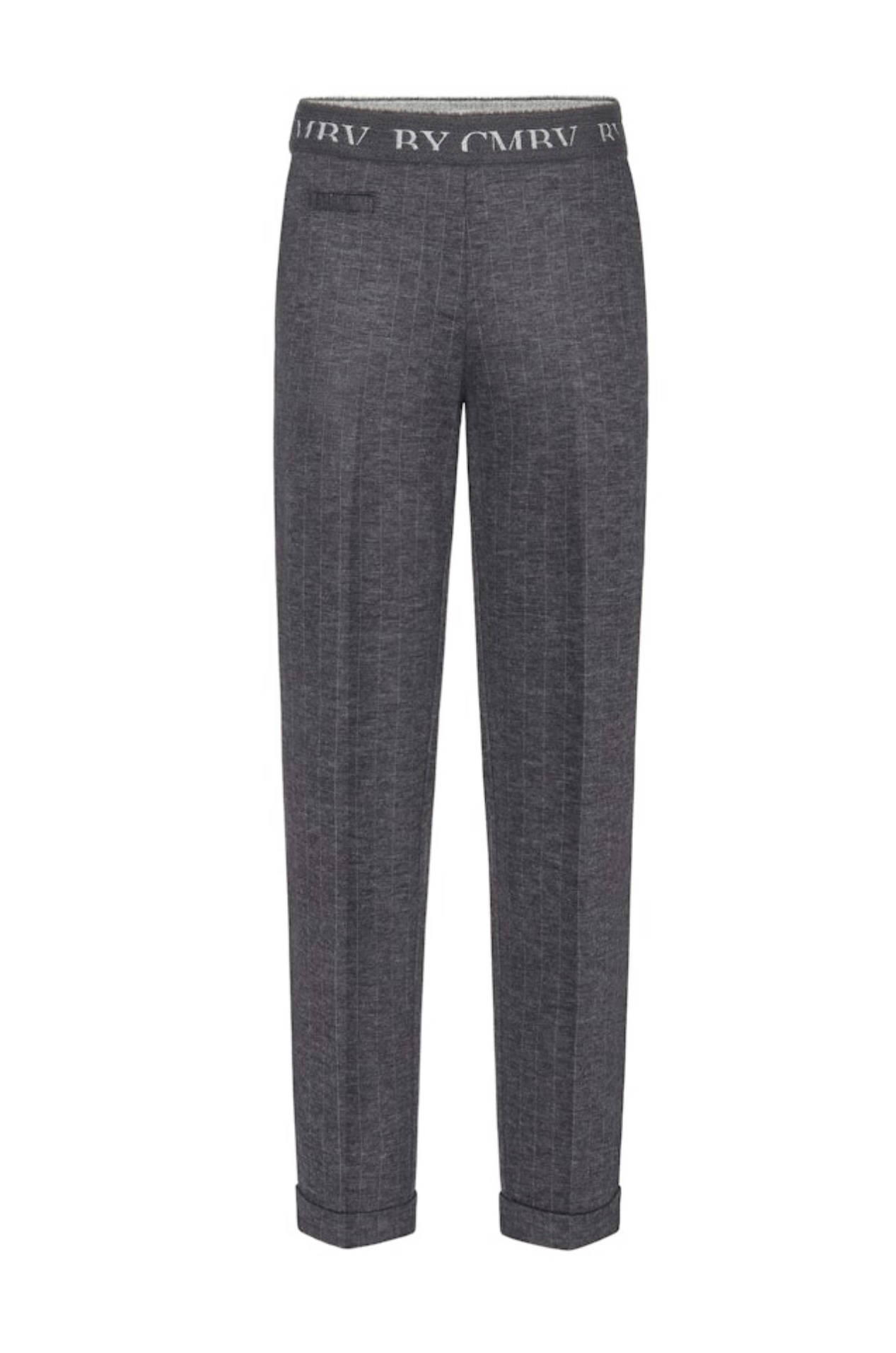 Lun og varm bukse med smale ben og oppbrett. Den har bred strikk i livet og skrålommer. Høy på livet.