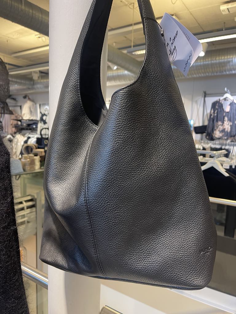 Lekker skinn veske med bred skulder rem. foret inni med en lomme med glidelås. magnet på toppen som lukker vesken.