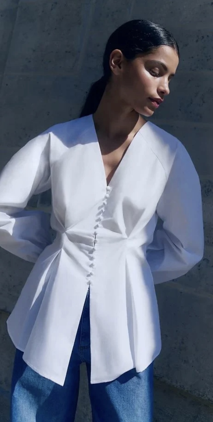 Feminin skjorte /bluse med innsvinget rygg og mange lekre detaljer.