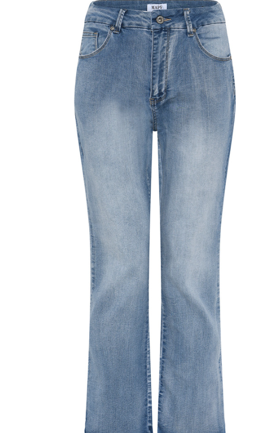 Myk og behagelig jeans med bootcut. Lommer foran. Knapp og glidelås for lukking. 7/8 lengde.