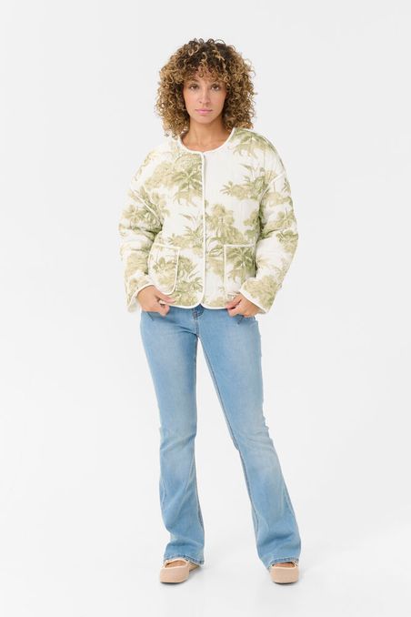 Lekker vattert jakke med trykkeknapper foran for lukking. Lommer foran.