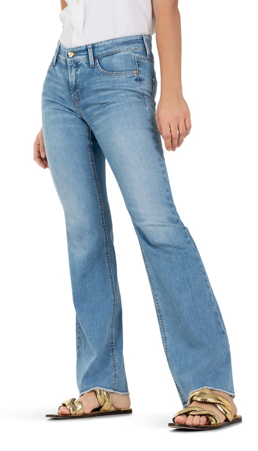 Myk og behagelig smal 5 lommers slengbukse med glidelås og knapp foran.