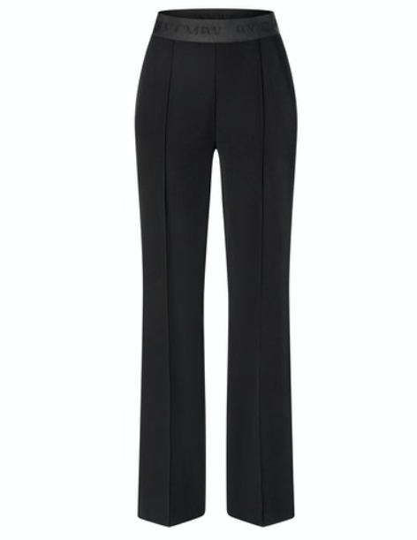 Behagelig strech bukse med strikk i livet, vide bein. buksen har lang ben lengde og har sidelommer. sydd press i front.