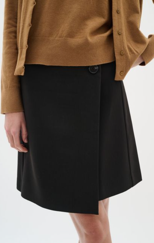 Et kult skjørt som kan brukes til alt! Med et omslag, en knap foran på skjørtet og en glidlås bak.