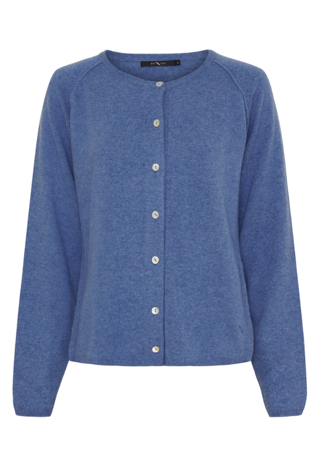 Classisk Cardigan med marmorknapper, liten ribbekant nederst på armene og bolen.