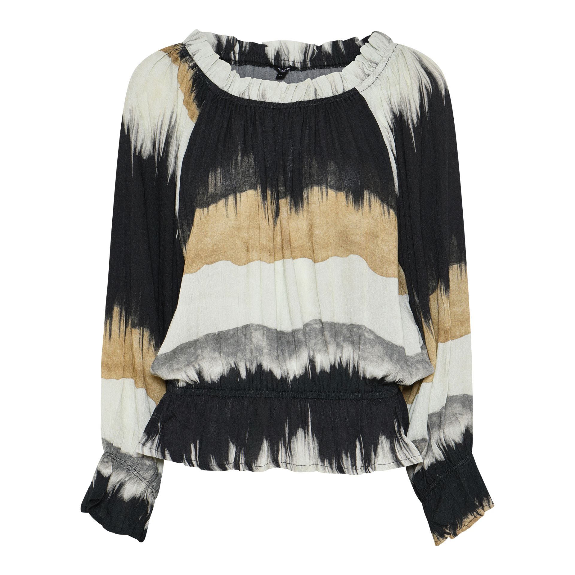 En bluse med et stilig mønster! Med god strech og strikk i livet og på armene.
