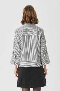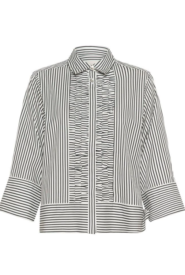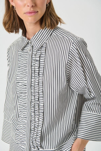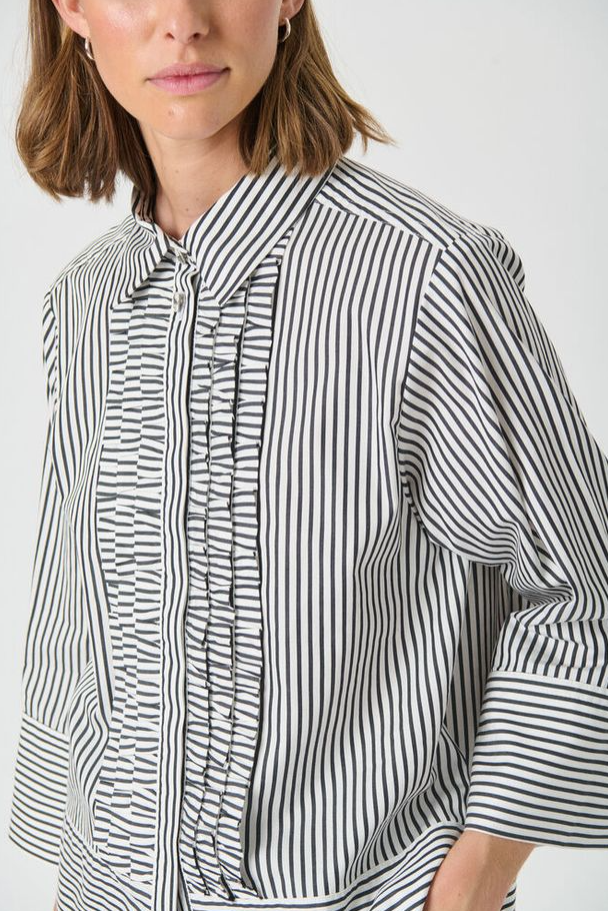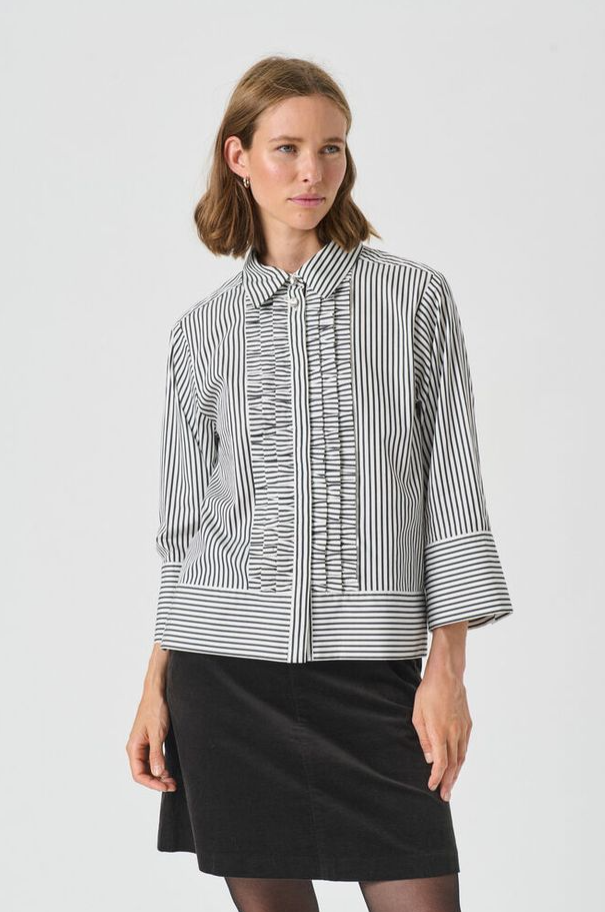 Unik skjorte med stilige detaljer. Krage, rysjer langs skjorten og fine knapper. Kan brukes til hverdags men også til penere annledninger.