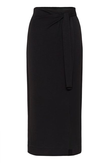 Behagelig skjørt med en kul detalje. Split bak og en knyte. Skjørtet har strikk i livet og går ned til ankelen.