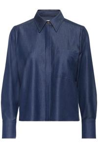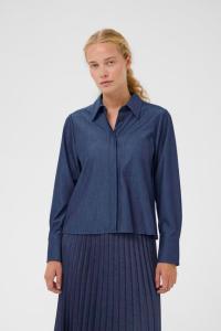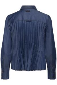 Kul skjorte med krage og en lomme forran. Med knapper på armene og folder på ryggen.