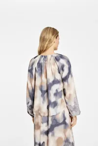 Nydlig bluse med forskjellige farger og knapper for åpning. Med puffermer og strikk nederst på armene.
