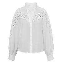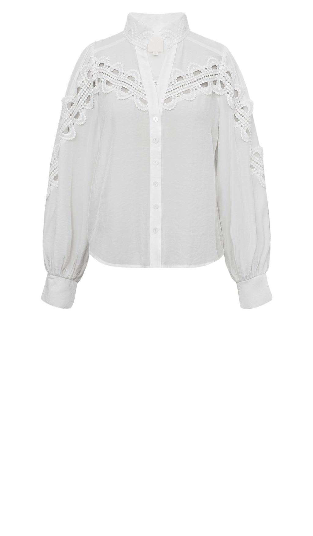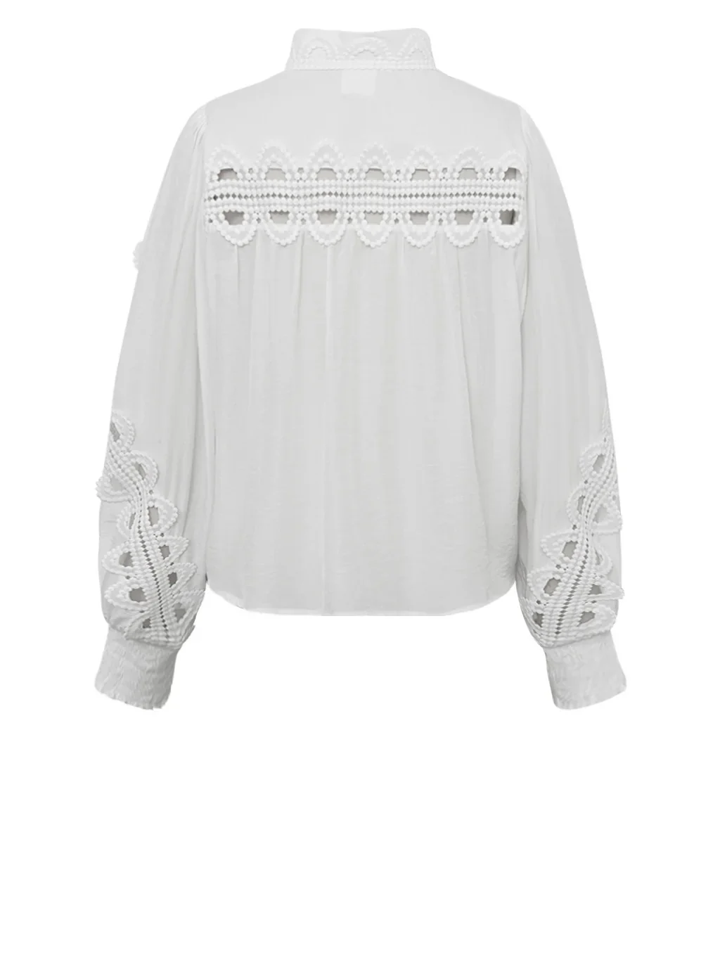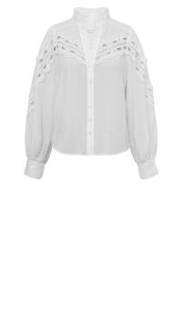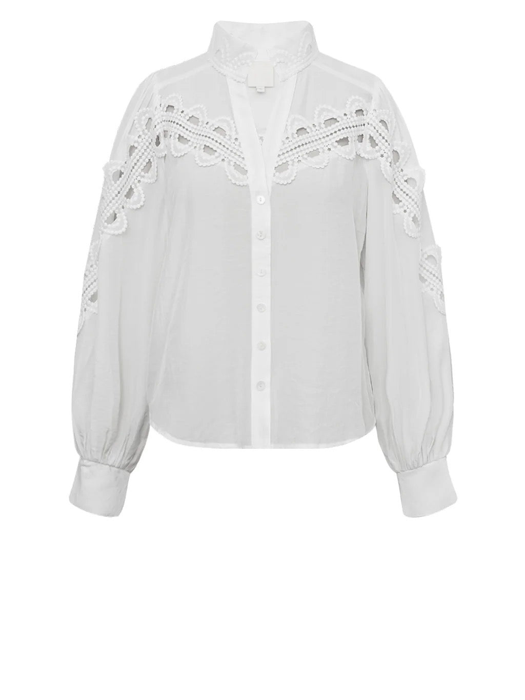 Lekker bluse med blondedetaljer. Knapper foran for lukking. Strikk nedest i kanten på ermene.