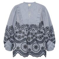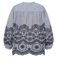 Stripete bluse med broderier. Ledig passform.