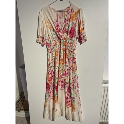Lang sommerkjole med blomster.