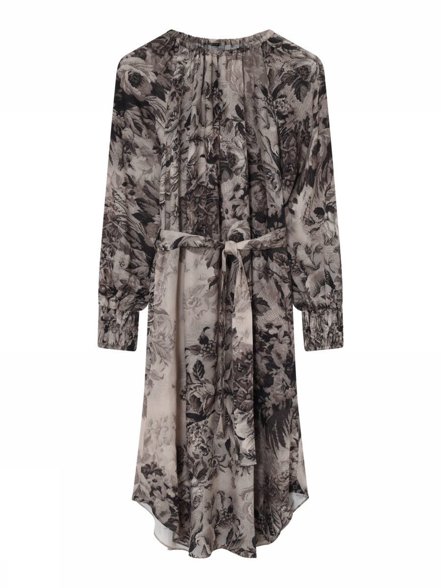 Nydelig mønstret kjole fra Gustav! Knepper foran, knyting i livet, lommer på sidene og strikk nederst på ermene.