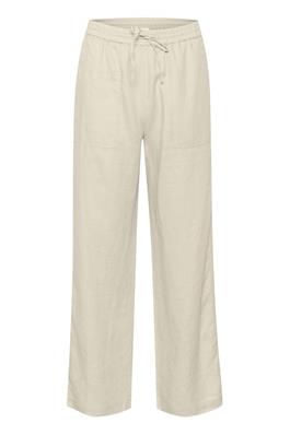 Deilig linbukse med lange bein. Buksen er høy i livet og har knyting.