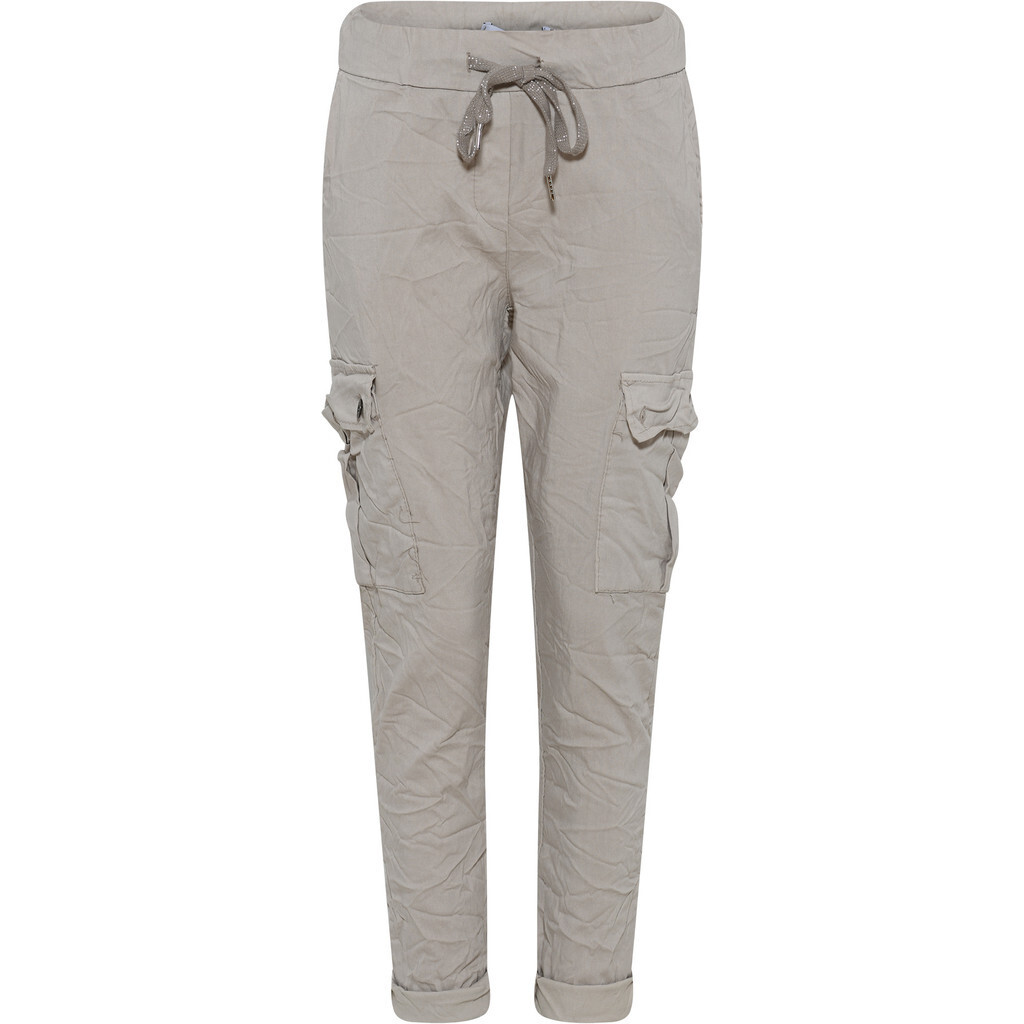 Kule cargo pants med knyting i livet. To vanlige skrålommer, og to store lommer på siden av lårene med knapp. Super deilige å ha på, og passer til alt.