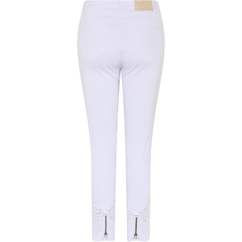 Fine ankelbukser med sløyfe og glidelås bak på ankelen. Buksene er høye i livet.