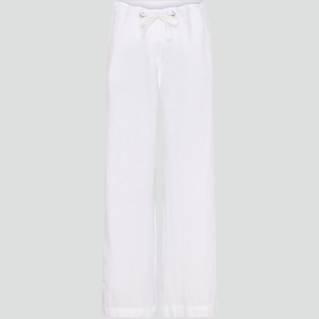 Stilige linbukser! De er luftige og behagelig å ha på. To lommer på siden. Den har glidelås og knapp foran til å lukke og knyting i livet.